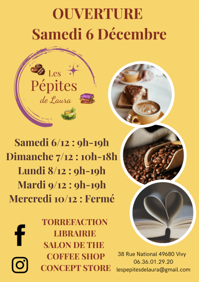 Venez découvrir les Pépites de Laura - Torréfacteur - Librairie - Salon de thé - Coffee Shop le samedi 06 décembre à partir de 9h au 38 rue Nationale
