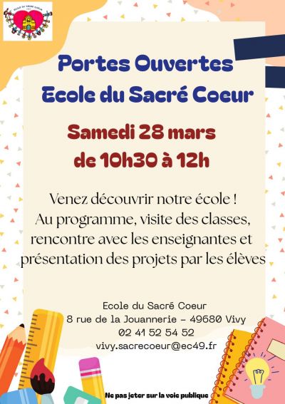 Venez découvrir l'Ecole du Sacré Cœur samedi 28 mars de 10h30 à 12h à l'occasion des portes ouvertes ! 😊